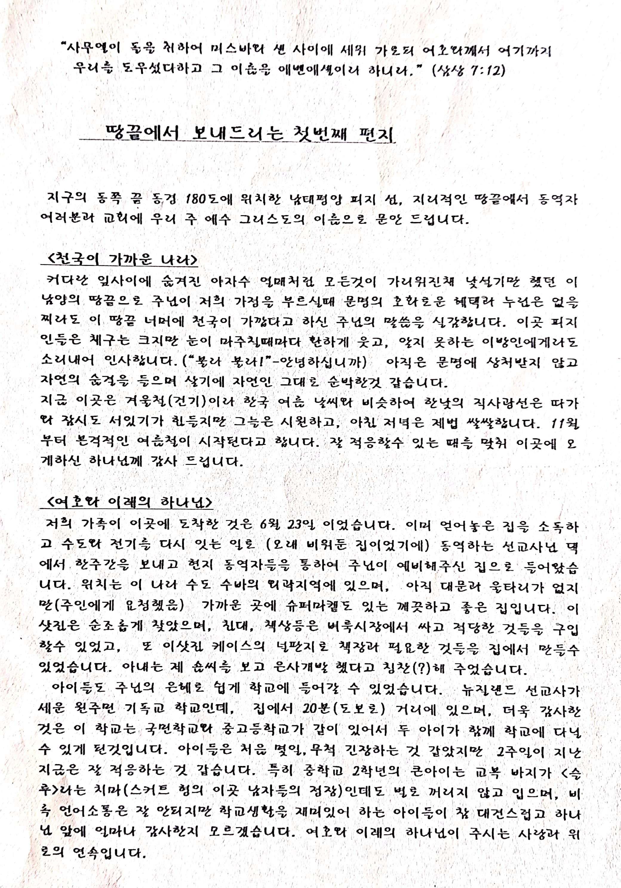 피지 첫번째 선교통신