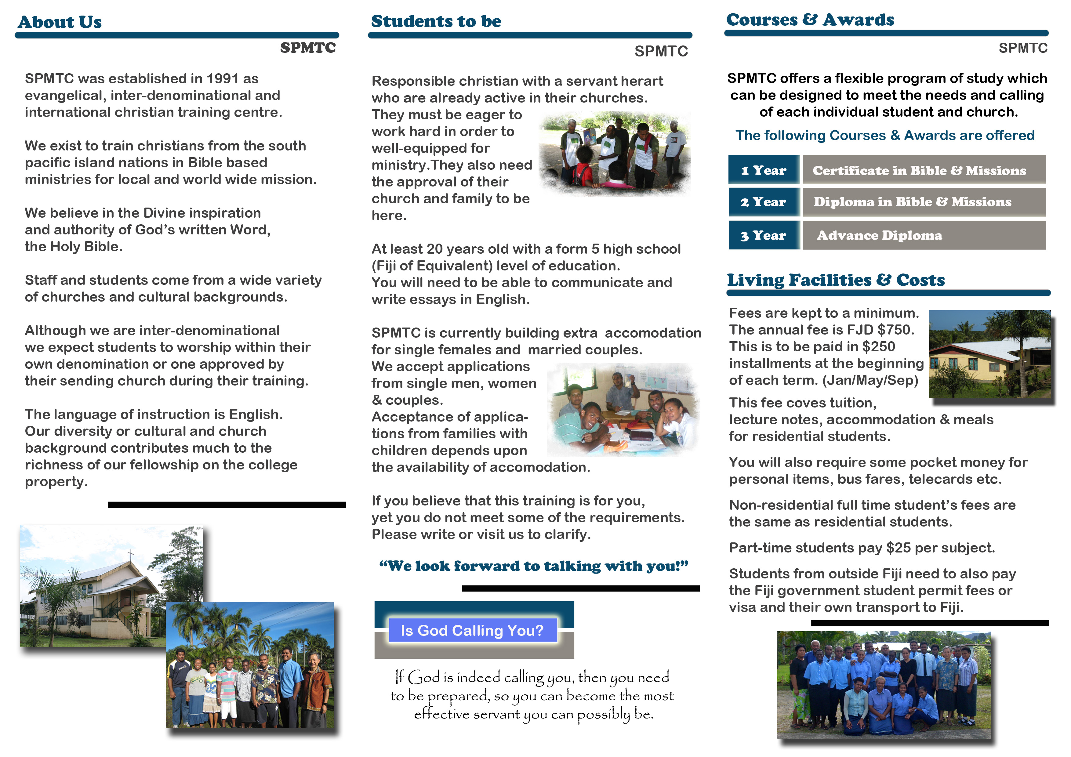 남태평양 젊은이들을 복음의 일꾼으로 양성하는 SPMTC는 학생과 교수들이 함께 공동체 생활을 한다.